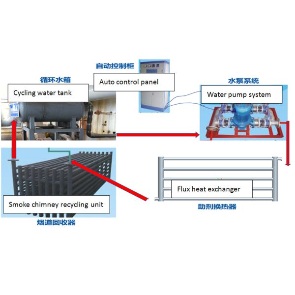 Your flux has only normal temperature, Zncl2 and HN4CL attachment will be slowly, and the flux is not easy to be dry on the working piece, resulting in the zinc explosion when the working pieces get into the zinc tank. Burning tail gas heat recycling system without extra heating source, by heat exchanger to keep the temperature 60~70 °, the density of Zncl2, NH4CL reduced considerably, and also increased the uniformity of Zncl2, NH4CL attachment on the working piece, and the zinc layer will be more uniformly and good galvanization result.
